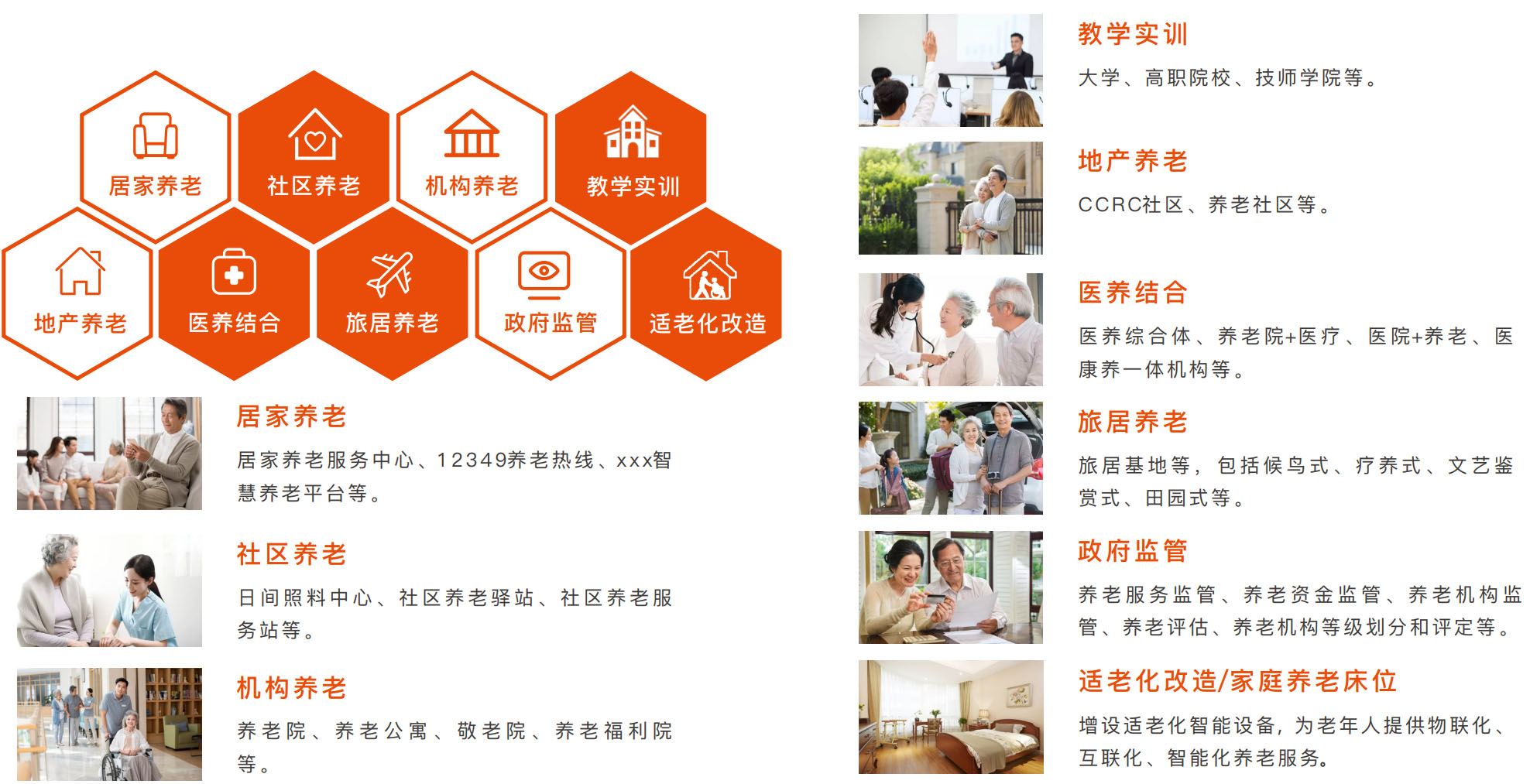 智慧實訓包括:老人會員中心、居家社區養老、機構養老、醫養康護、管理中心、智慧中心等幾百個實訓內容;養老器具實訓包括:智能化器具、康復器具、健康監測器具、助行器具、適老化器具、中醫理療等。養老實訓室規劃包括居家養老實訓室、日間照料實訓室、大數據中心實訓室、康復實訓室、機構養老實訓室、健康監護實訓室、老人評估實訓室、養老用品綜合展示中心。