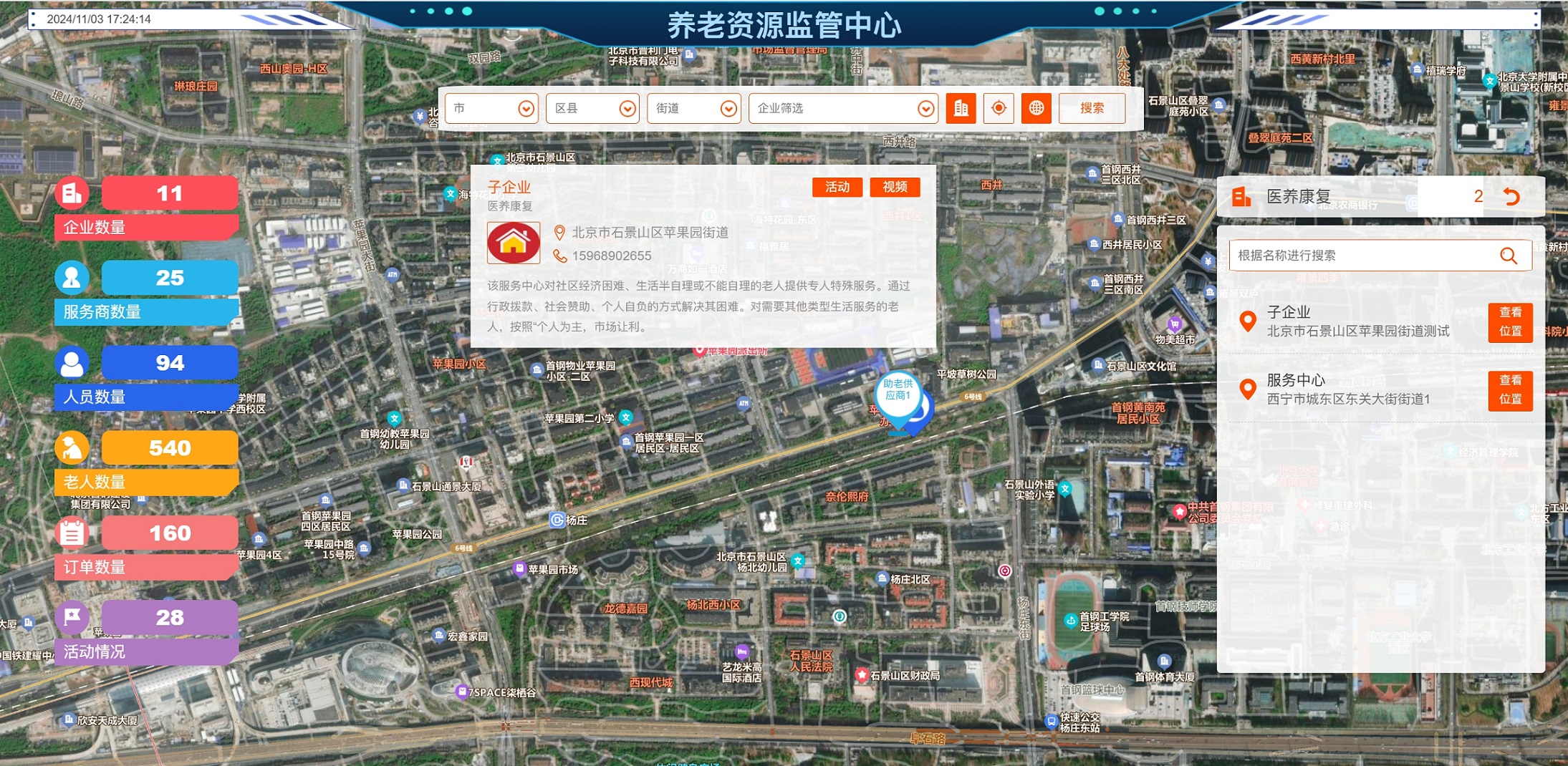 智慧監管:定制化政府需求,科學管理信息,全面把控質量,可視化數據呈現;轄區內老人數據實時更新,補貼信息嚴格監管,政府實時了解老人、社區、服務機構、服務人員、老人健康情況、老人求助情況等統計分析,為政府做出相關決策提供數據依據。